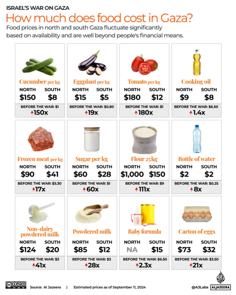 Al Jazeera journalists compiled a summary of the prices of food items as of September.