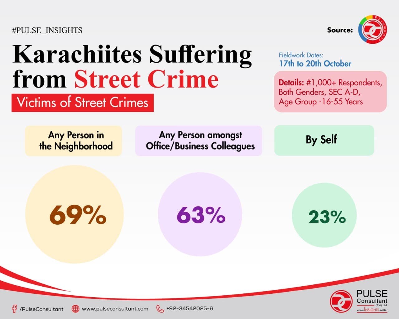 ■ Similarly, 6 out of 10 (63%) claimed that someone in their workplace (Office / Business Colleagues) has faced an incident of street crime