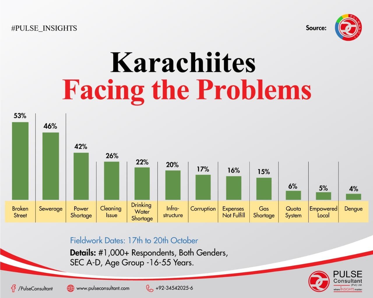 The survey also asked 1000 respondents about the problems they are facing in the city to which 53 per cent of them said they have issues with broken roads.