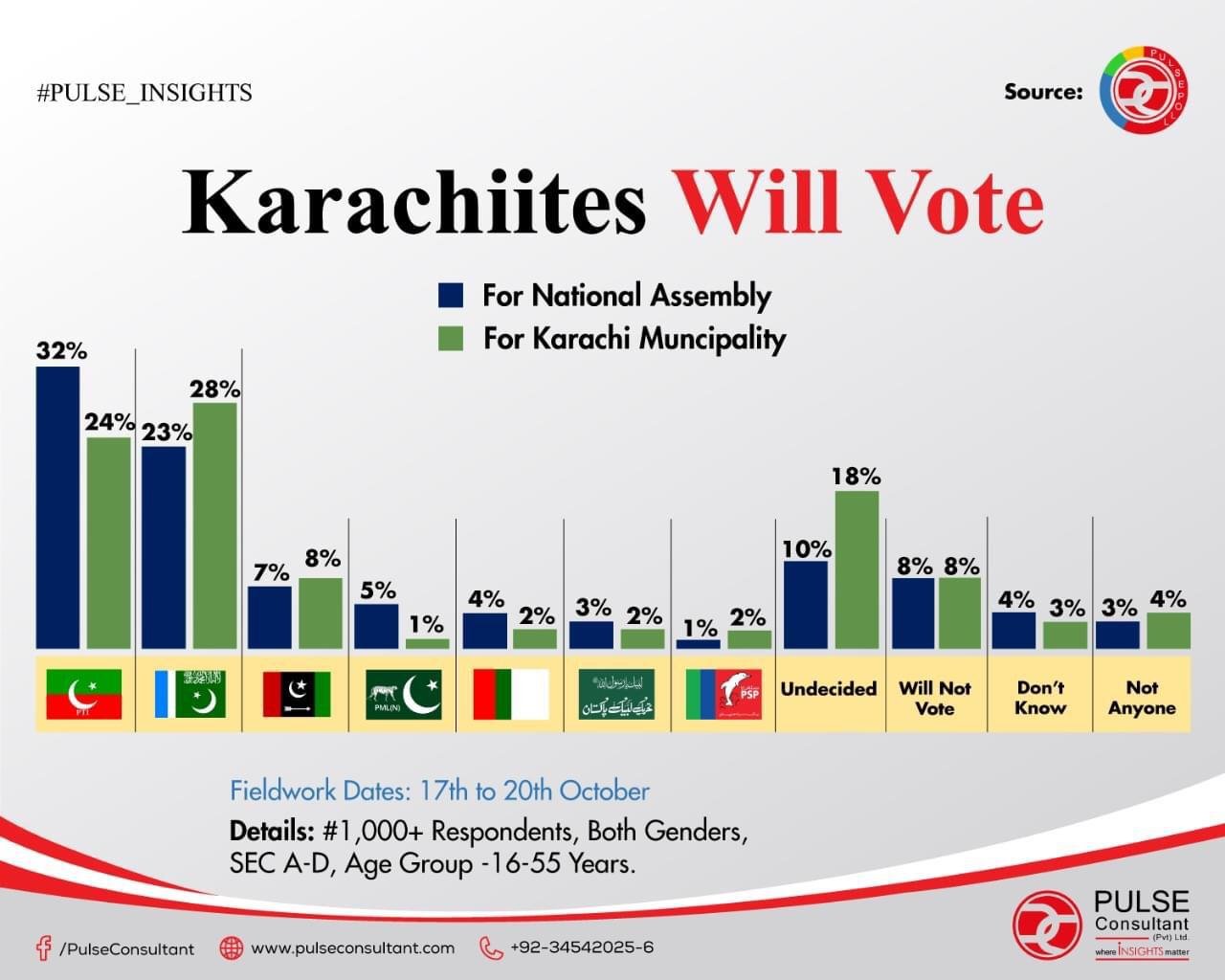 A Pulse Consultant study conducted in the month of October has revealed that Pakistan Tehreek Insaf (PTI) is the leading party in the capital of Sindh.