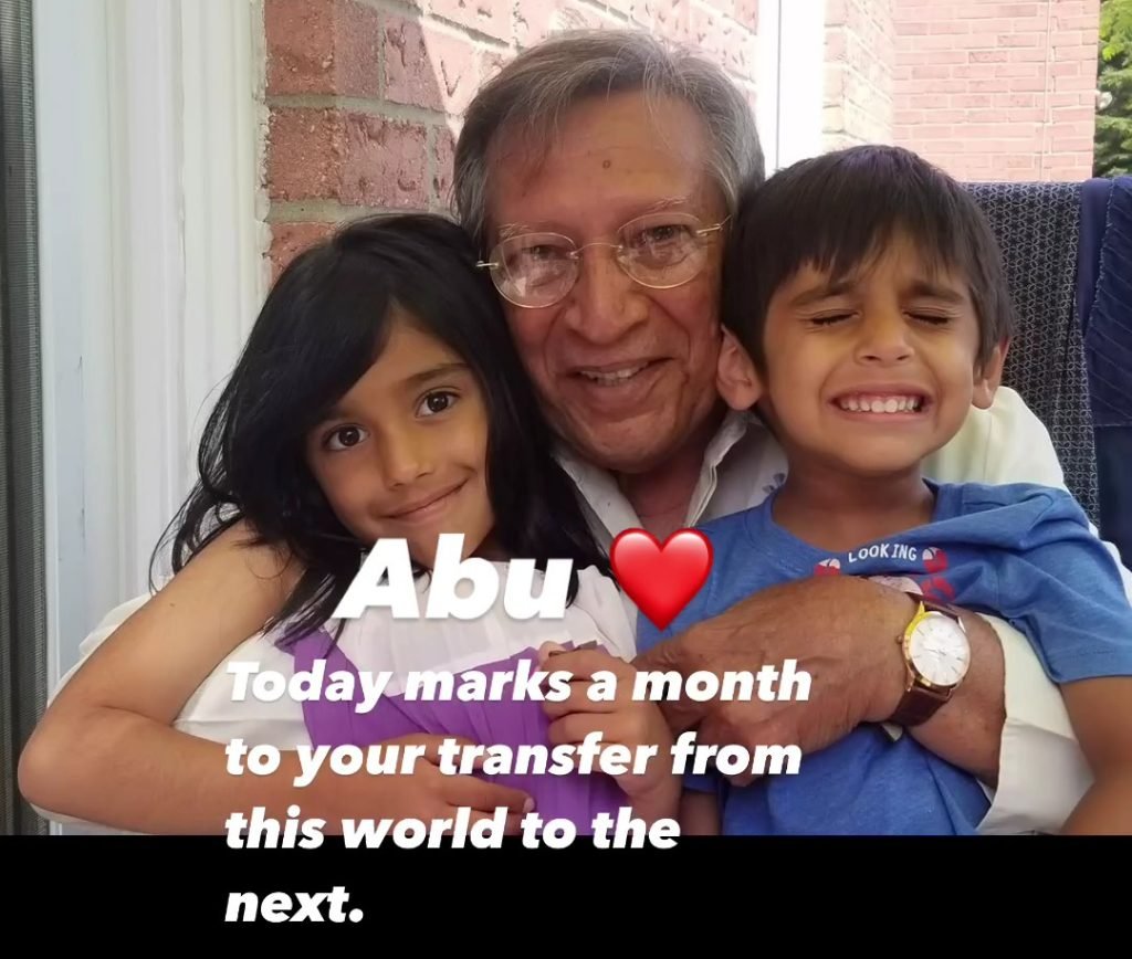 “As a month passes, I come to terms with the fact that you have moved on. We all do, slowly. So, here’s reliving some of the crazy moments we shared with you in recent months. I know you are with the one who loves you the most. But hey, we love you too ❤️❤️❤️… and don’t you forget that, Abu jee!”