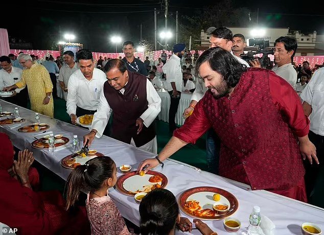 Ambani and wife Nita, along with their son Anant and his fiancee Radhika, launched a three-day feast for more than 51,000 villagers at the Reliance Township in his hometown of Jamnagar.