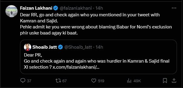 Veteran sports journalist Faizan Lakhani trolled Shoaib Jatt for criticising Babar Azam after Pakistan won against England in the Second Test in Multan.