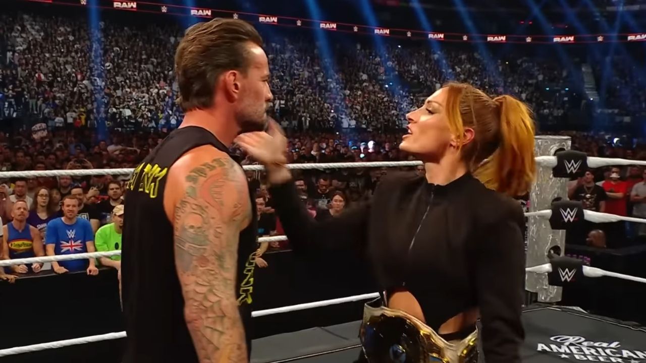 Irish professional wrestler Becky Lynch slapped American wrestler and actor CM Punk on World Wrestling Entertainment (WWE) Raw after stepping in to defend her husband Seth Rollins.
