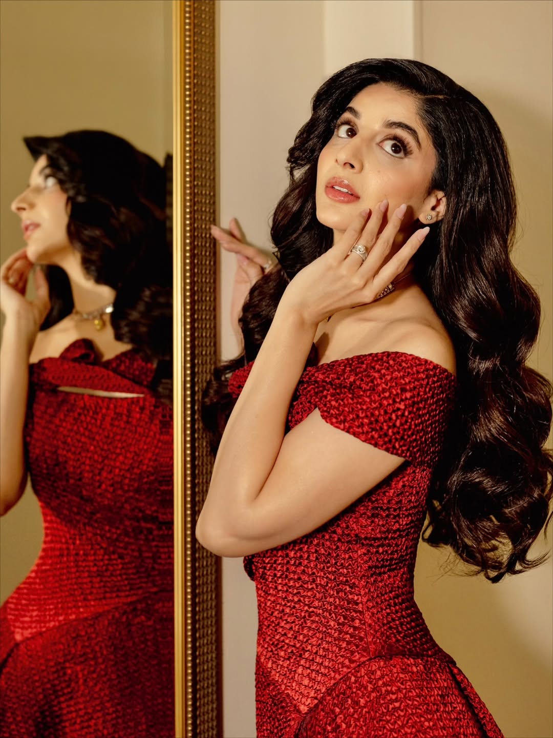 Mawra turned heads in a stunning red gown by Gemmy Maalouf featuring a dramatic draped skirt. Channeling a modern-day Barbie, she styled the look with a delicate silver necklace by Hanif Jewelers. The overall ensemble was radiant and elegant, definitely a “wow” out of ten look.