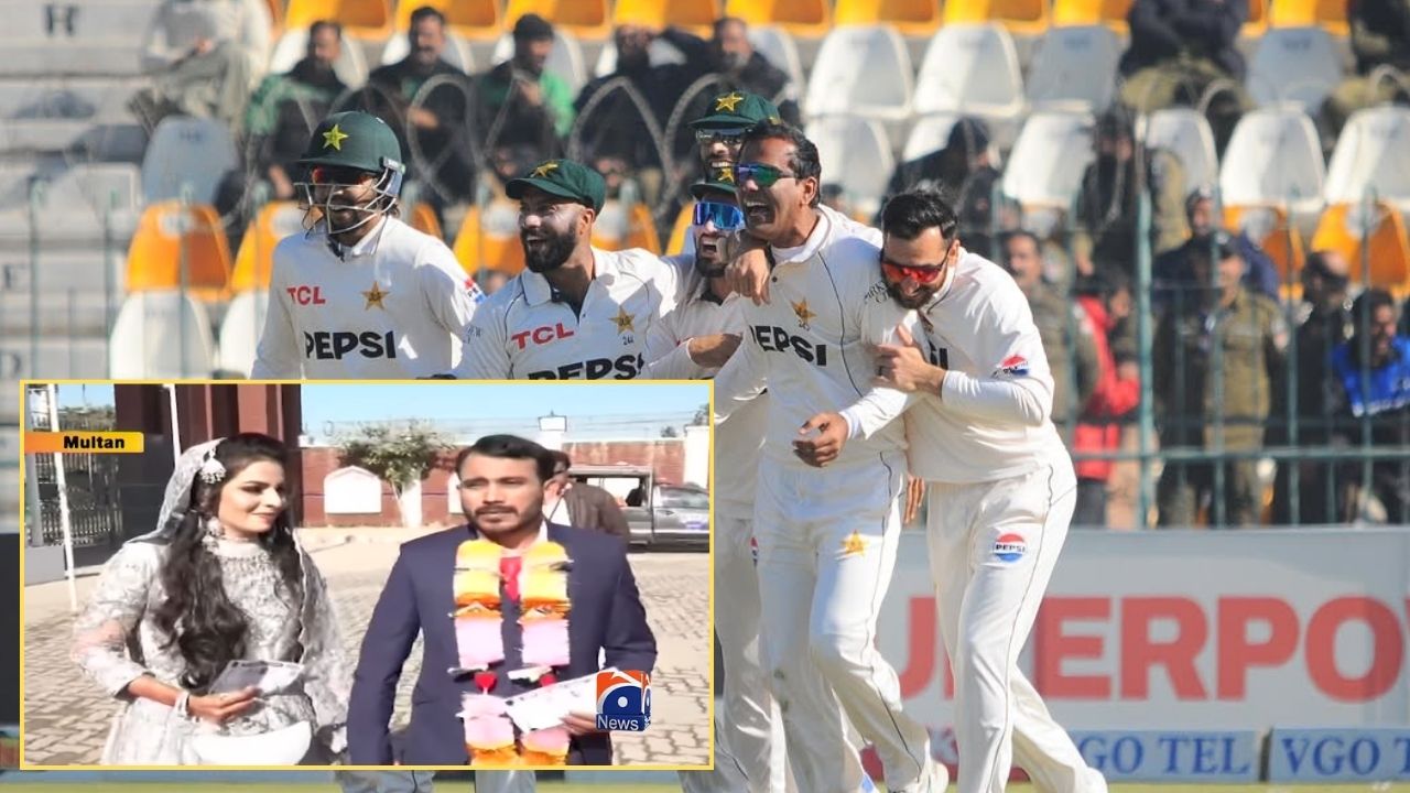 A newlywed couple caught everyone's attention during the second Test match between Pakistan and West Indies in Multan.