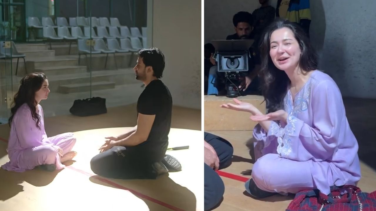 The actress took to Instagram to post a behind-the-scenes clip from the drama shoot, featuring her character Ayra confessing her love to Kamyar, played by Bilal Abbas Khan.