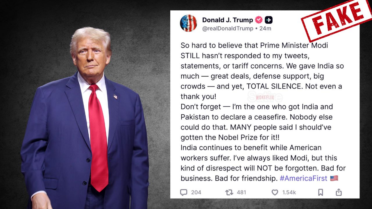 A screenshot of United States (US) President Donald Trump’s Truth Social post that called Indian Prime Minister (PM) Narendra Modi out for not responding to the announcement of whopping 25 per cent reciprocal tariffs on New Delhi, has turned out to be fake.