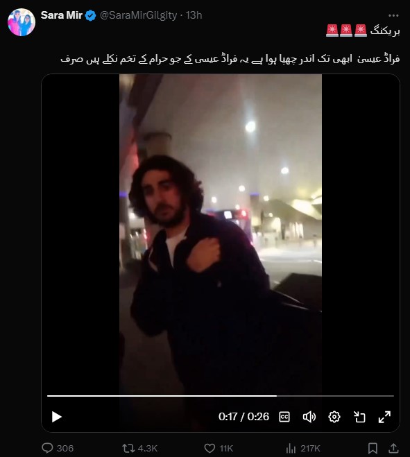 Sara Mir, also known as Rukhsana Kousar, a Pakistan Tehreek-e-Insaf (PTI) worker yesterday misled PTI followers by adding a voice-over over the original video, falsely identifying unknown travellers as former Chief Justice Pakistan Qazi Faez Isa’s sons arriving at London airport.