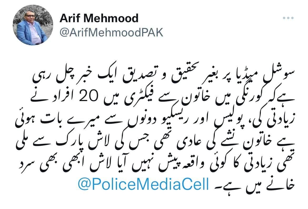 Several media reports on social media are claiming that a woman was gang-raped by 20 men at an industrial unit in Karachi’s Korangi district. The alleged rape occurred at Artistic Milliners, a vertical denim manufacturing company. The hashtag ‘Artistic Milliners Rape Case’ has been trending on Twitter since (Wednesday) morning.