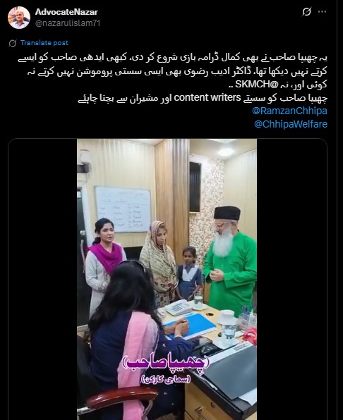 One social media user wrote, “Chhipa Sahib has also started quite a theatrical performance, never saw Edhi Sahib [Philantropist] doing such things, nor does Dr. Adeeb Rizvi [Philantropist] engage in such cheap promotion, nor others. Chhipa Sahib should avoid cheap content writers and advisors (sic).”