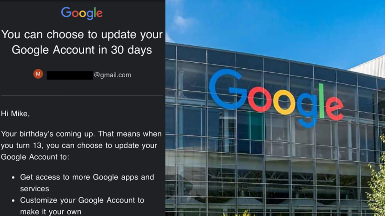 McKay also shared a screenshot of the email, which stated: “Your birthday’s coming up. That means when you turn 13, you can choose to update your account to get more access to Google apps and services.”