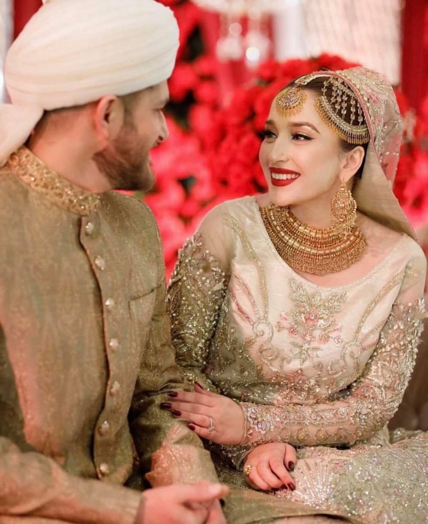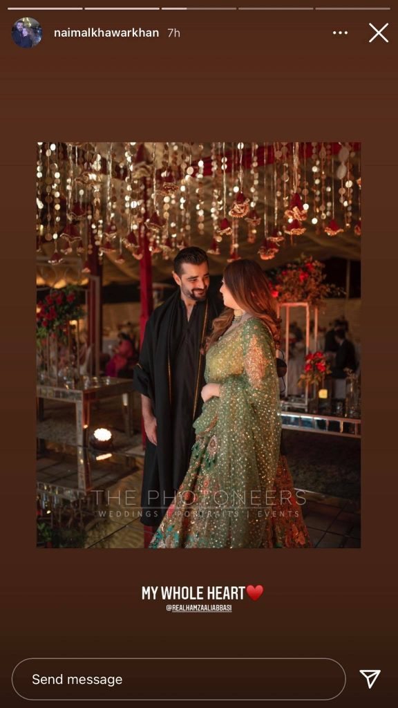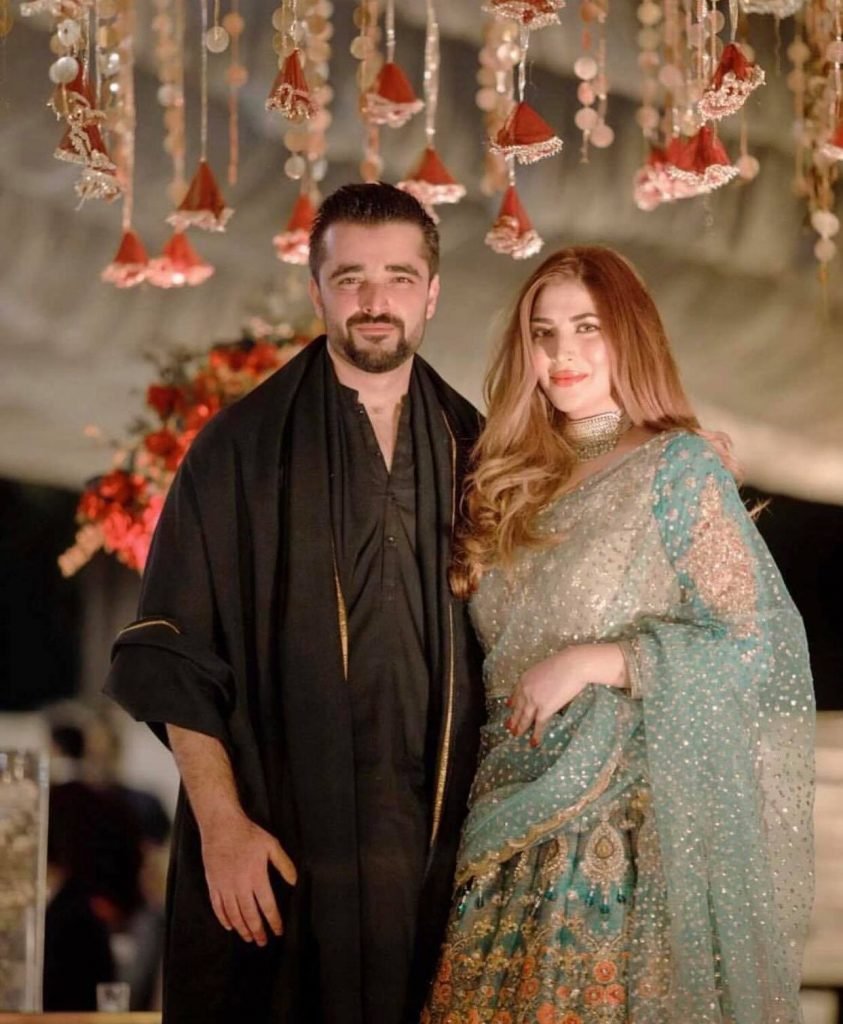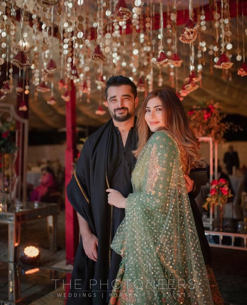 While Hamza looked dapper in a black shalwar kameez with a matching shawl, Naimal glowed in a beautiful blue-green floral dress by Nomi Ansari.