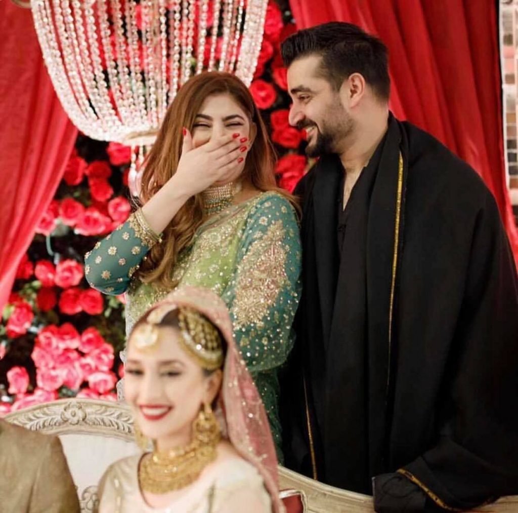 Hamza Ali Abbasi was spotted with sister doctor Fazeela Abbasi at Naimal’s sister Fiza Khawar’s wedding Wednesday Night.