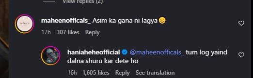 The moment stood out not for drama but for tone. Hania’s reply was witty and half-serious, a reminder that social media is not a referendum on music choices.