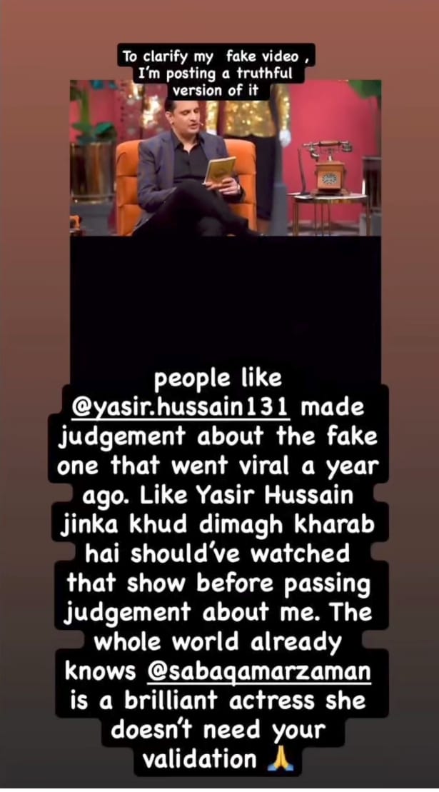 She also emphasised her admiration for Saba and said, “The whole world already knows @sabaqamarzaman is a brilliant actress; she doesn’t need your validation.”