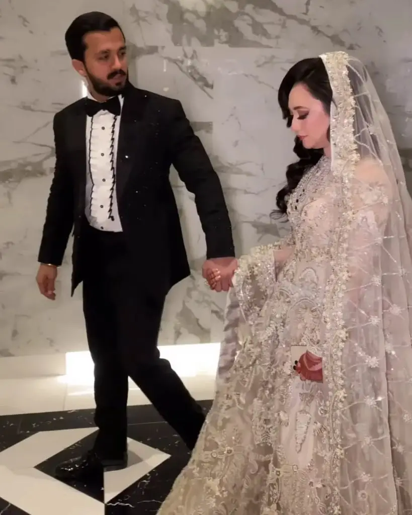 The Walima was a spectacular event, radiating joy and elegance. Emaan looked breathtaking in a shimmering silver outfit, paired with beautiful mauve makeup that highlighted her features perfectly. Rajab Butt complemented her style, looking dapper and happy.