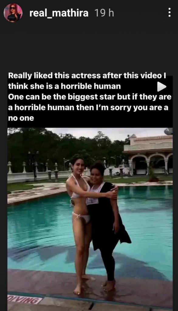 Mathira stated that Sara is a horrible human for her.