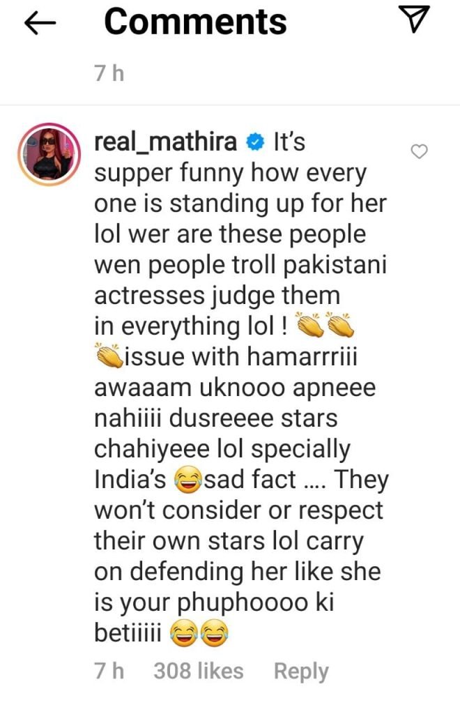 When some netizens supported Sara by saying that she did it as a fun gesture, Mathira schooled them by saying that local netizens love to support foreign stars.