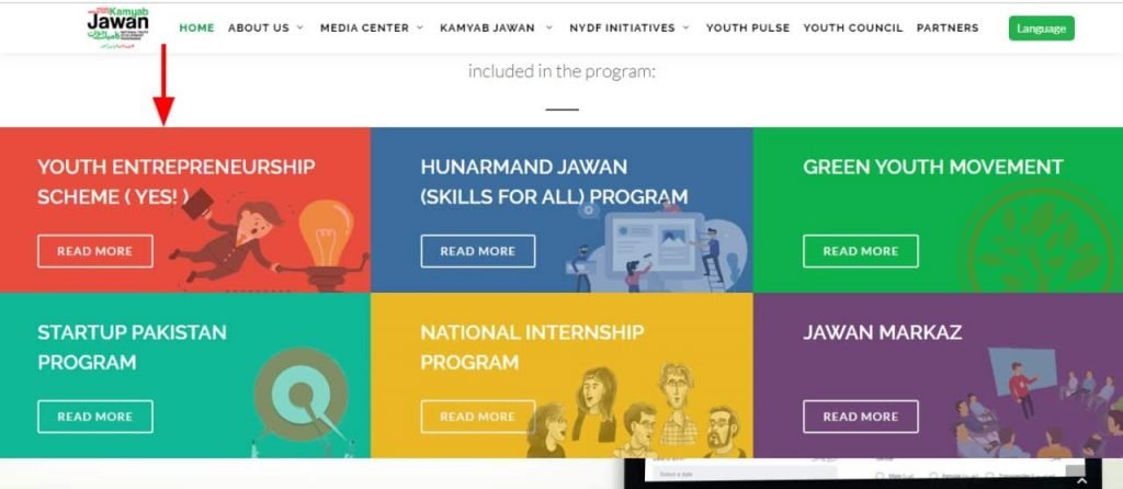Scroll down the homepage and press “Read More” button below the “Youth Entrepreneurship Scheme (Yes)” initiative.