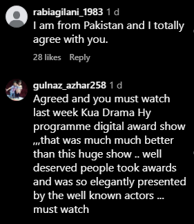Taking to Instagram, Shahryar praised the Pakistani drama industry for its strong storytelling and exceptional acting talent. However, he expressed disappointment over the dance segments at the awards show.