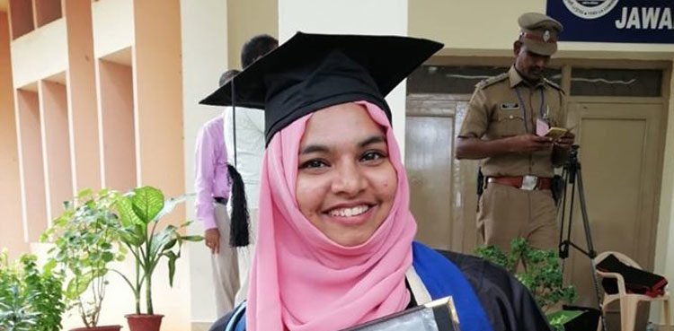 Rabeeha Abdurehim, who secured the first position in the post-graduate department of Mass Communication, said she was asked to come out of the hall where the convocation was taking place. The special superintendent of police wanted to speak to the student.