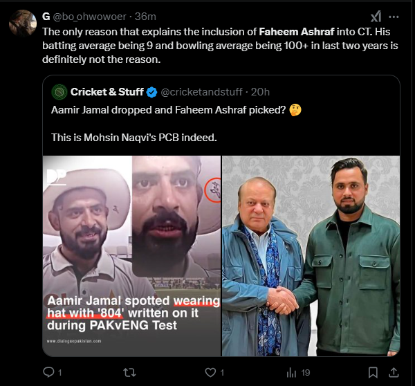 All-rounder Faheem Ashraf tops the list of cricketers whose selection has left fans fuming as they take to social media to voice their criticism. Netizens speculate if Ashraf, who last played an ODI for Pakistan in 2022, was picked to play for the national side due to his “political allegiances”.