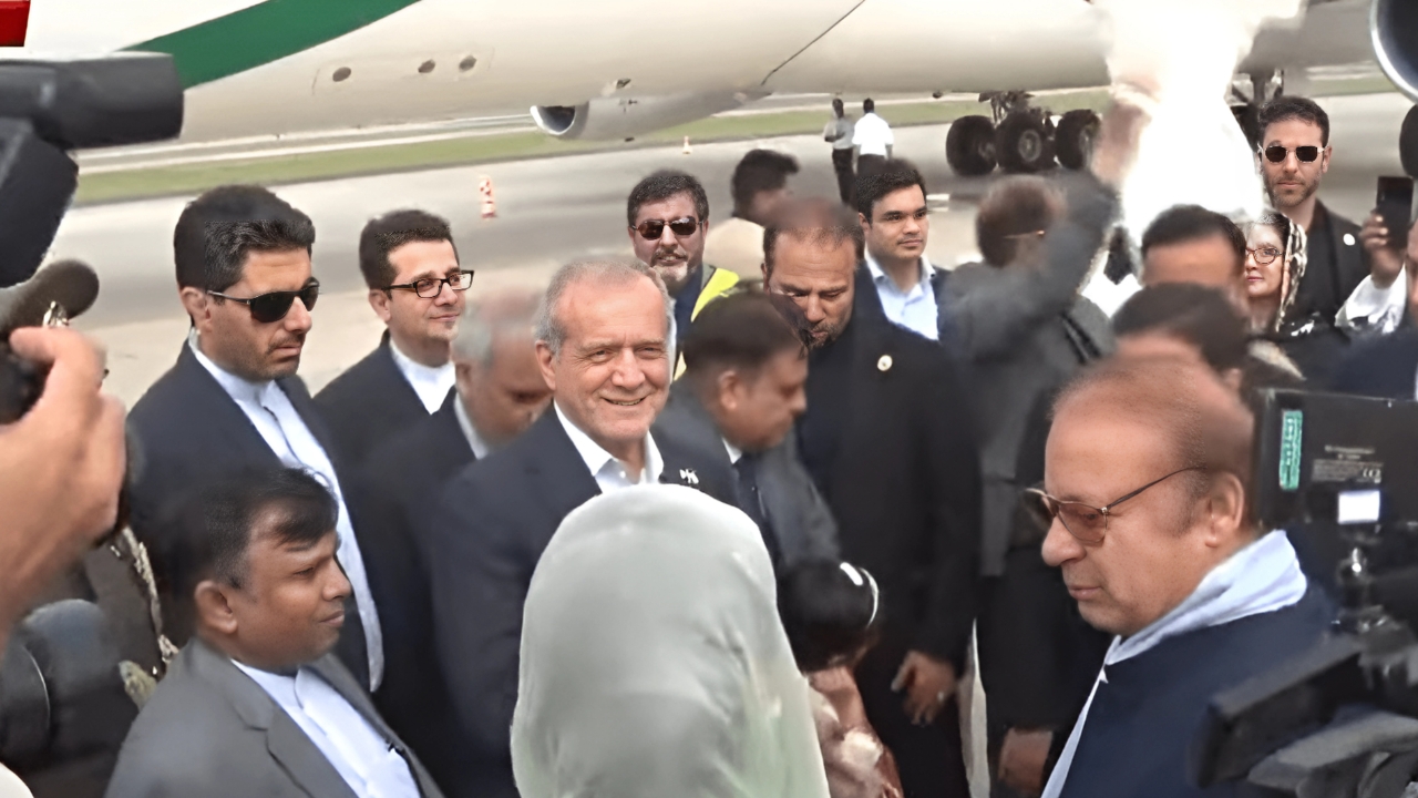 In an effort to reiterate his commitment to enhance bilateral trade with Pakistan, Iranian President Masoud Pezeshkian landed in Pakistan on Saturday.