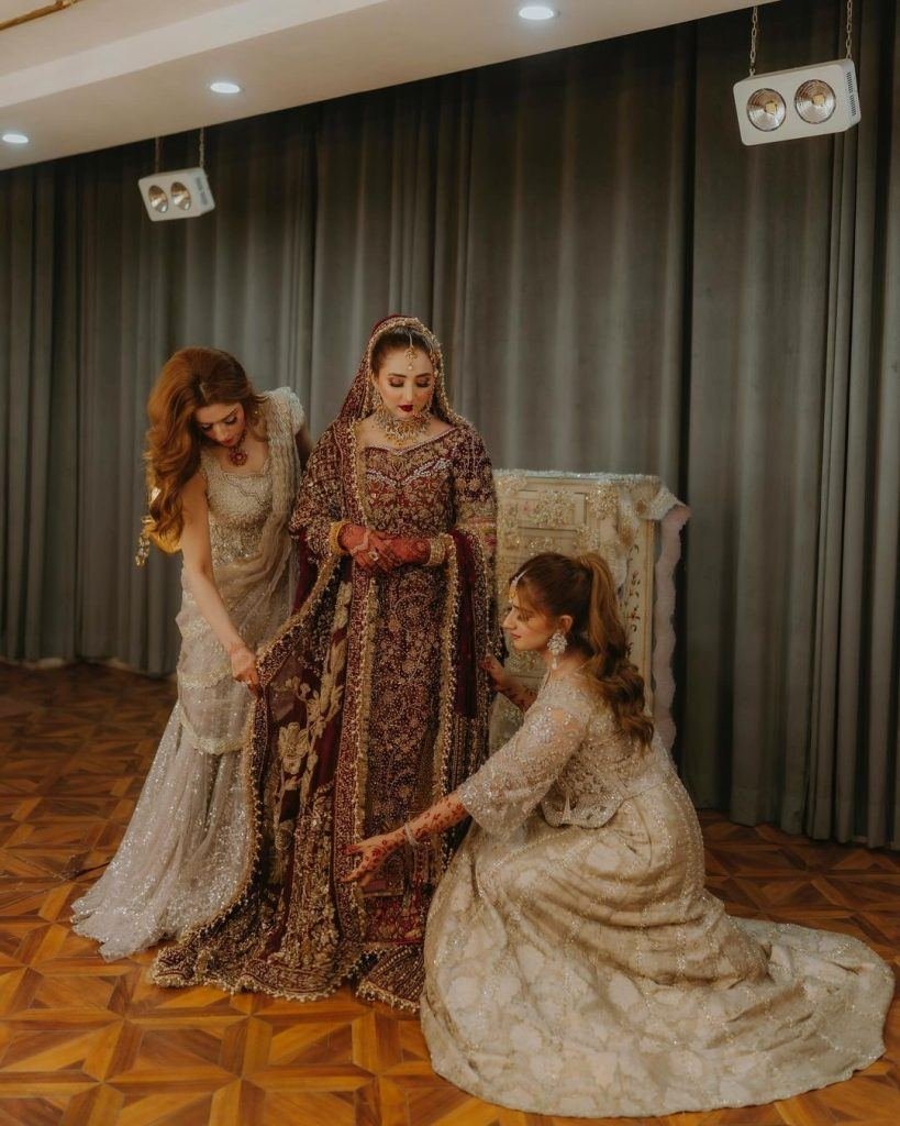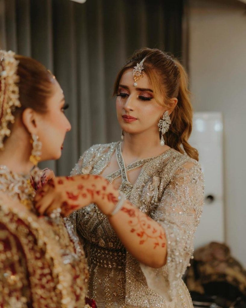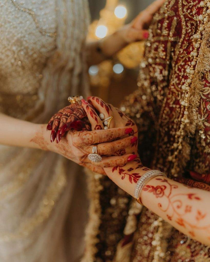 The Mirza sisters recently celebrated their sister Sehar’s wedding to Talha. What made Sehar’s wedding special was that the ceremonies were carried out virtually without her groom physically present. Jannat Mirza and Alishba Anjum looked glamorous on their sister’s wedding day. Sehar looked stunning in a traditional deep red bridal outfit. They shared beautiful photos yesterday, and today, Jannat Mirza shared her gorgeous pictures too.