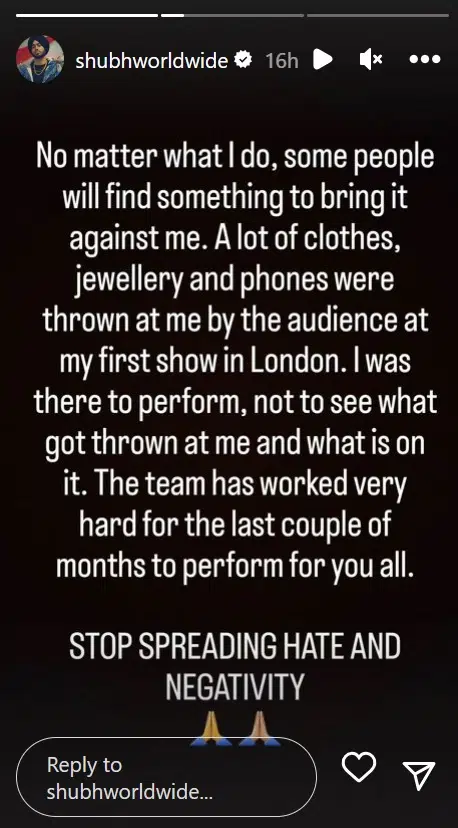 He wrote, “No matter what I do, some people will find something to bring it against me. A lot of clothes, jewelry and phones were thrown at me by the audience at my first show in London. I was there to perform, not to see what got thrown at me and what is on it. The team has worked very hard for the last couple of months to perform for you all. Stop spreading hate and negativity.”