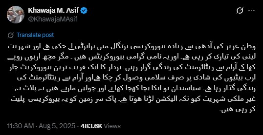 Defence Minister and senior PML-N leader Khawaja Asif has levelled serious allegations against the country’s bureaucracy, triggering intense backlash online, much of it aimed at the minister himself.