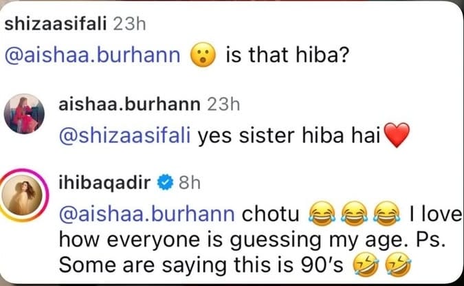 While responding to the questions, Hiba said, "I love how everyone is guessing my age. PS, some are saying this is 90's."