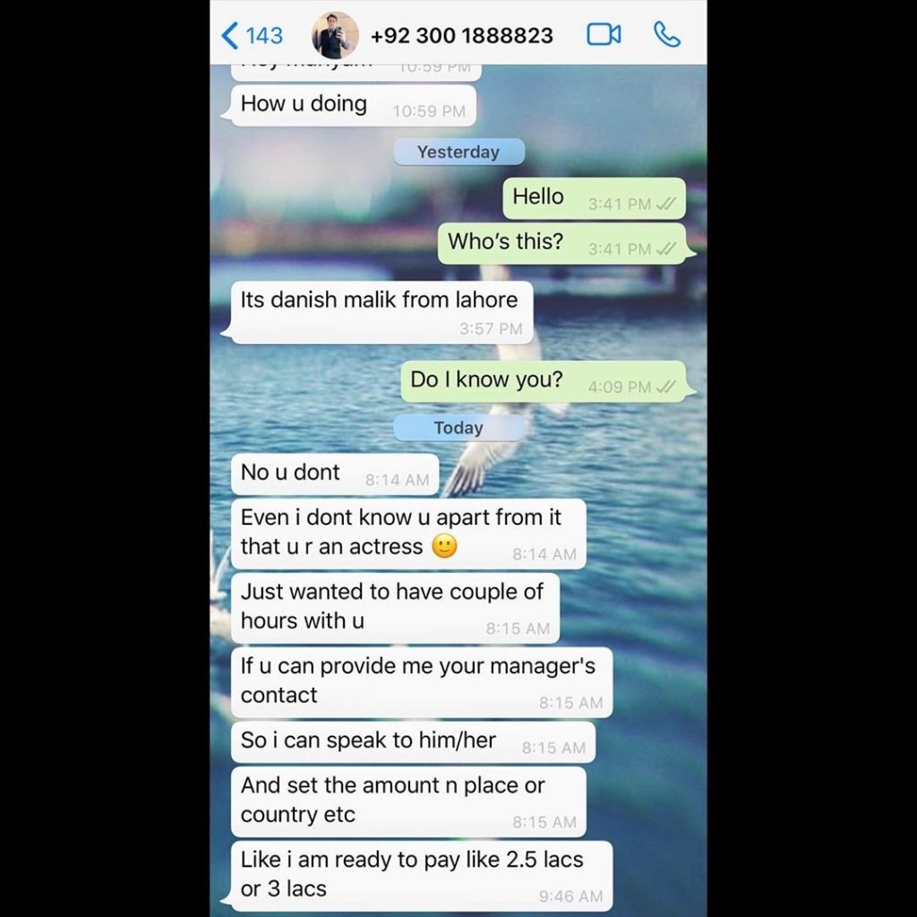 Sharing screenshots of the messages he sent, Nafees took to social media and wrote, “Actress hu, prostitute nahi. (I’m an actress, not a prostitute).”