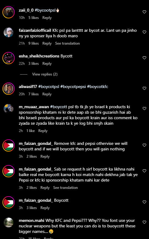 "Boycott PSL until they remove sponsorship from Zionist brands. I request everyone not just to post about boycotting but to actually do it—don't watch a single match until these sponsorships end," wrote another.