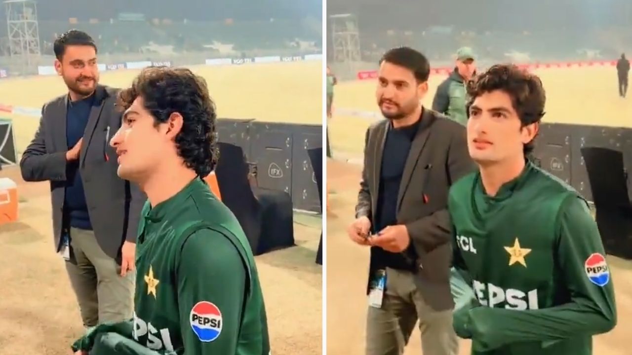 After a recent tri-series match, cricketer Naseem Shah approached fans near the stands to interact with them.
