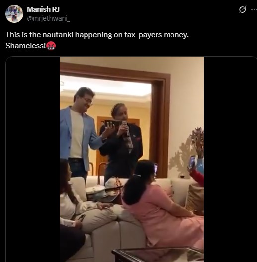 A social media user shared the video of Shashi Tharoor on X (formerly Twitter), which showed Tharoor singing a song in front of enthralled Indian diaspora members. In the caption, the user wrote, “This is the nautanki (drama) happening on tax-payers money. Shameless.”