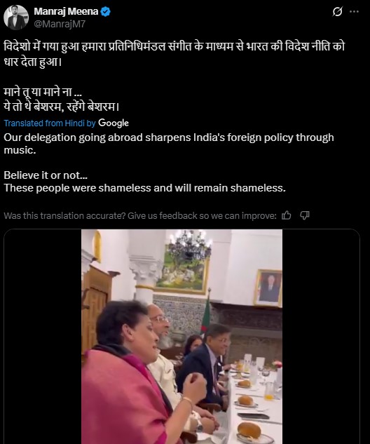 “They are the parliamentary delegation sent by the Modi government to enjoy a vacation in the name of spreading message of the action of India's on Pakistan. Shamelessly singing and enjoying (sic),” one of the users wrote.