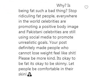 While Nimra may have decided to pen this caption randomly, the truth is that her statement comes across as problematic and appears that she is fat shaming. And people called out Nimra for doing just that.