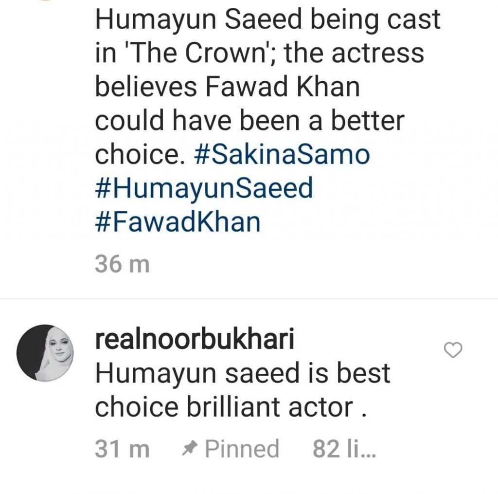 She suggested the name of Humsafar star Fawad Khan in place of Humayun.