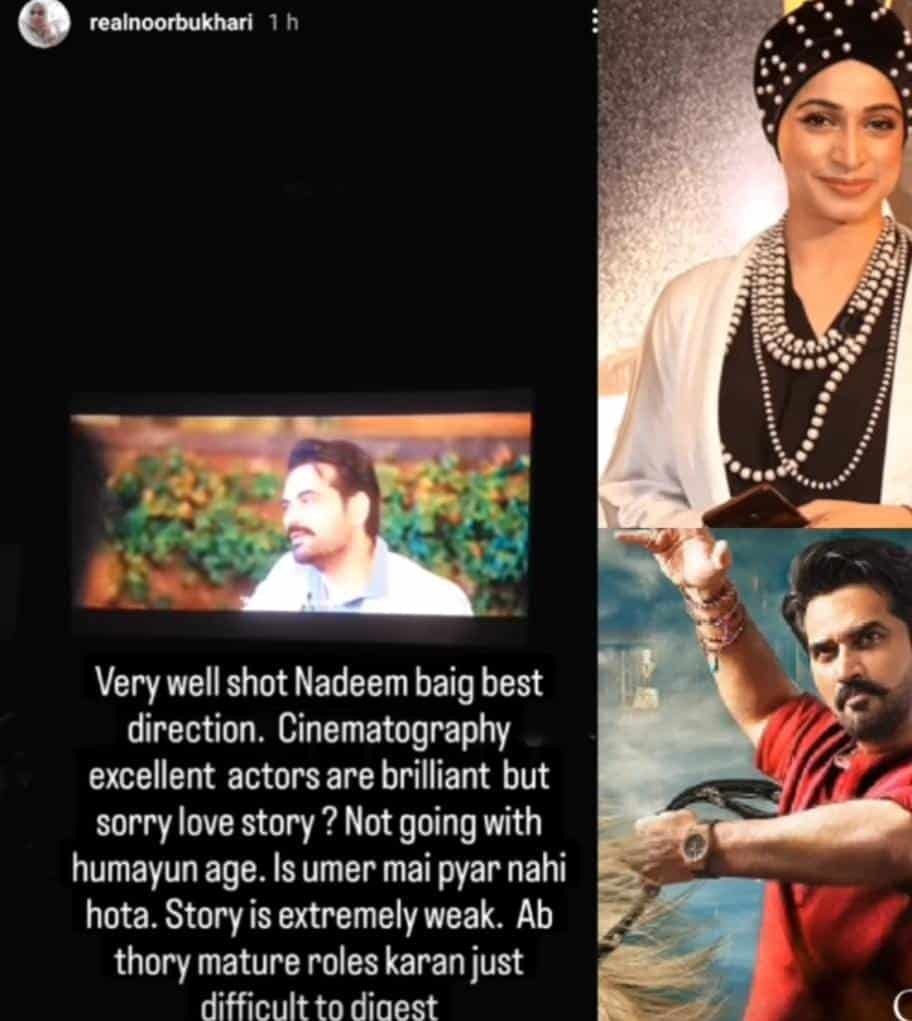 Taking to Instagram story section, Noor said that the “story is extremely weak.” She also took a jab at Humayun, believing he should be doing more mature roles. Bukhari added that, “Love doesn’t happens in this age.”