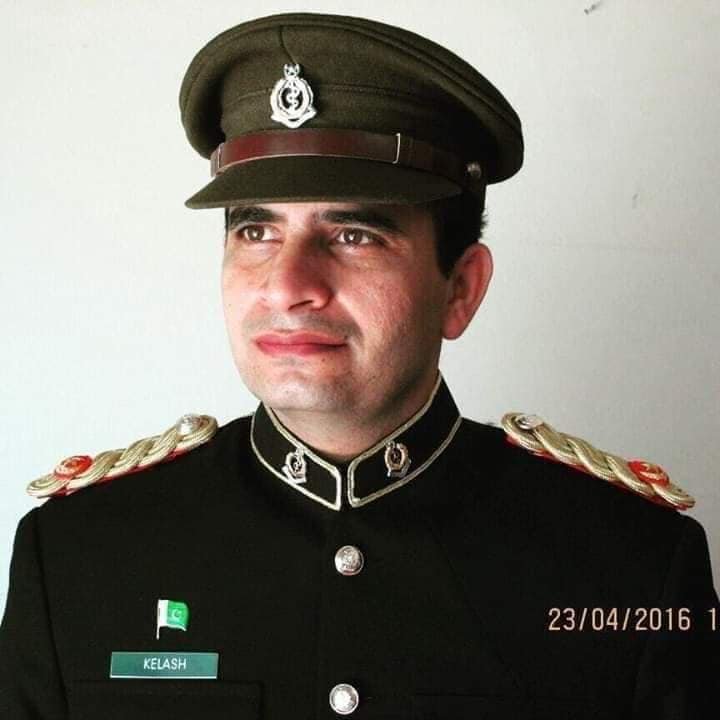 Dr Kelash is very proud of his country and pins a Pakistani flag on his army uniform.