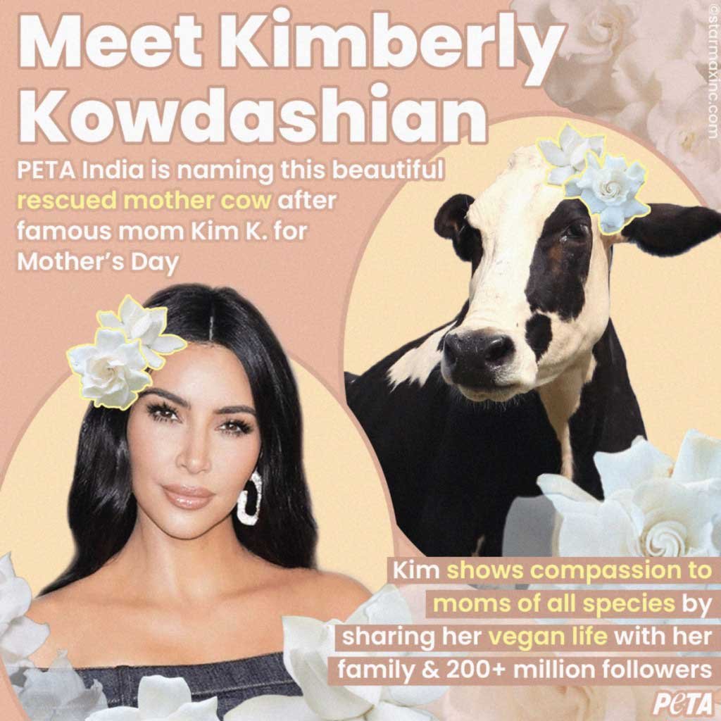“For Mother’s Day, PETA India names rescued mother cow ‘Kim Kowdashian’ after reality TV star Kim Kardashian,” tweeted the animal rights advocate’s India branch.