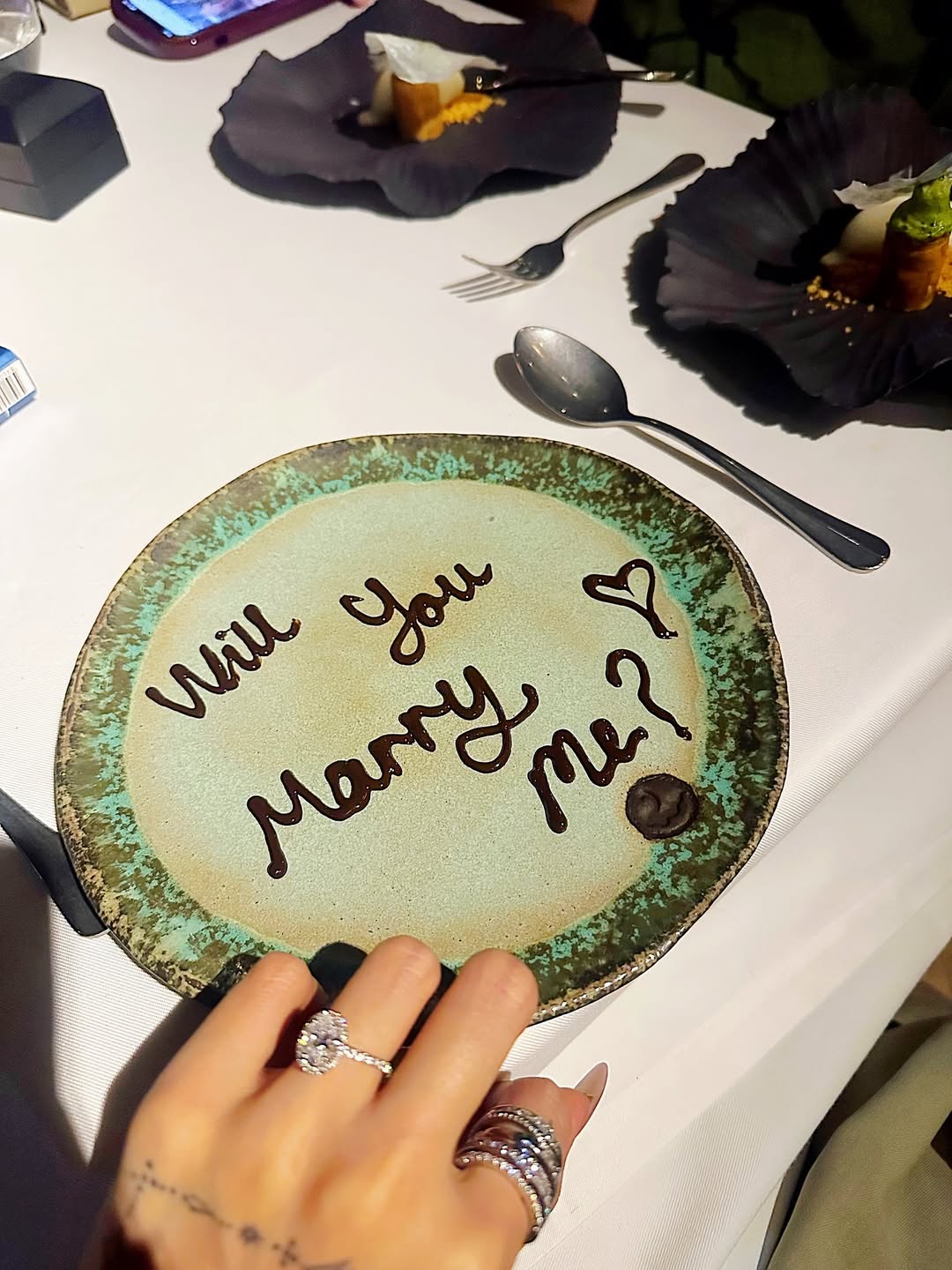 In one of the pictures, Aima proudly flaunts her sparkling diamond ring — a symbol of Zain's love for her. Another picture shows a dessert plate with the words “Will You Marry Me?” written in chocolate, adding a deliciously sweet touch to the whole affair.