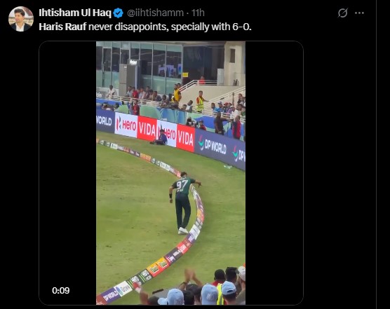 “Haris Rauf never disappoints, specially, with 6-0,” wrote another journalist Ihtisham Ul Haq