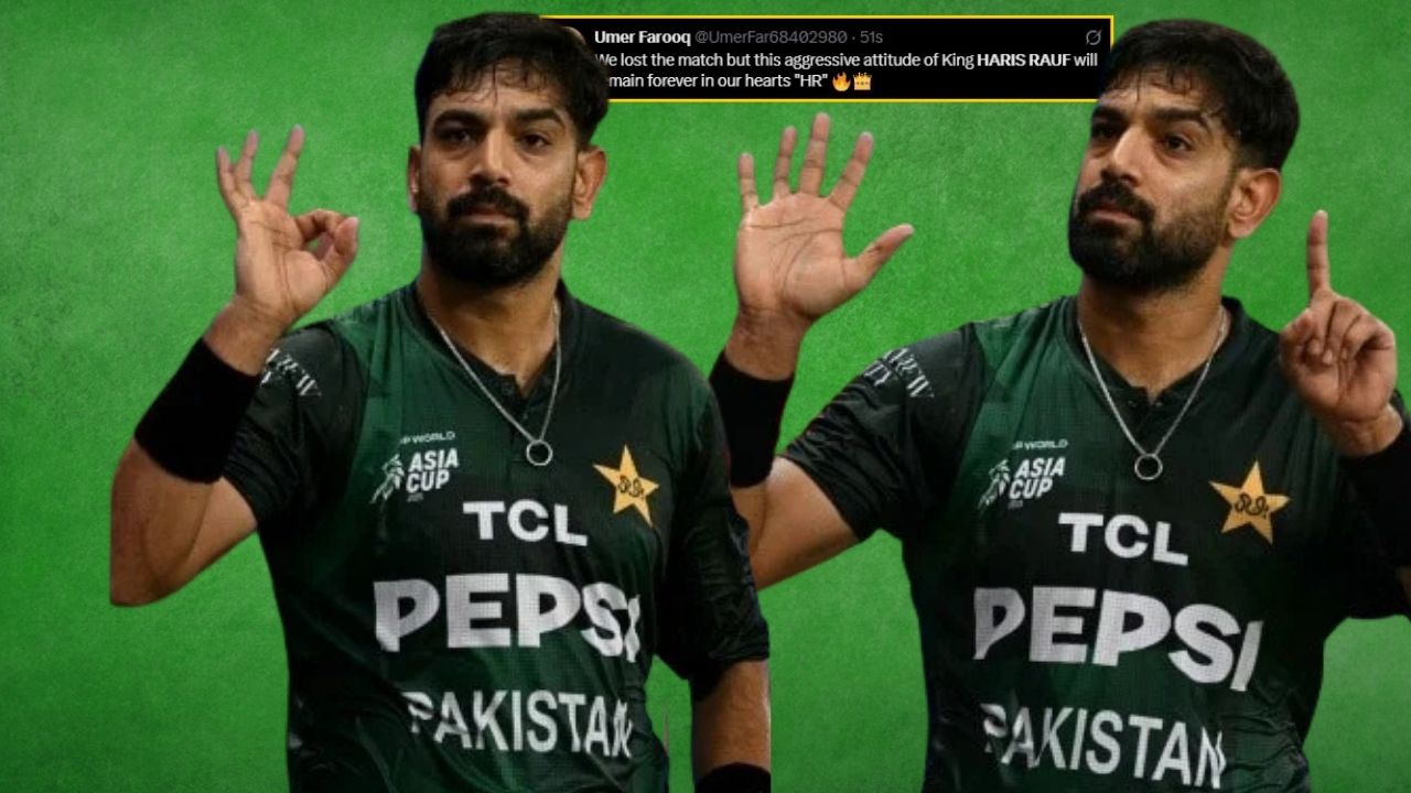 Social media users are in fits over Pakistani pacer Haris Rauf’s response to jeers from Indian spectators and Sahibzada Farhan’s fifty celebration against India during the Super Fours clash at the Asia Cup.
