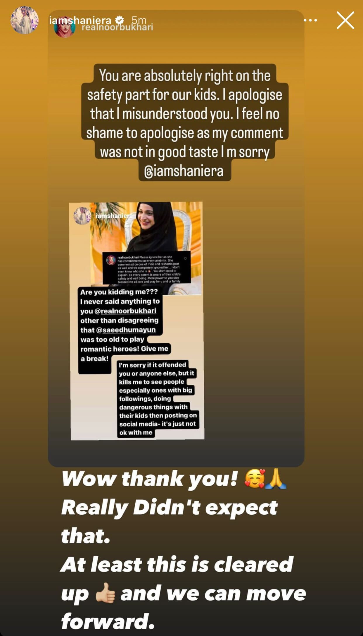 Surprised by Bukhari’s apology, Akram thanked her and shared, “Wow, thank you! Really didn’t expect that. At least this is cleared up and we can move forward.”