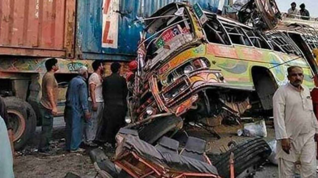 Six people have died in a collision between a bus and a trailer in the Langar Sarai area of Muzaffargarh.