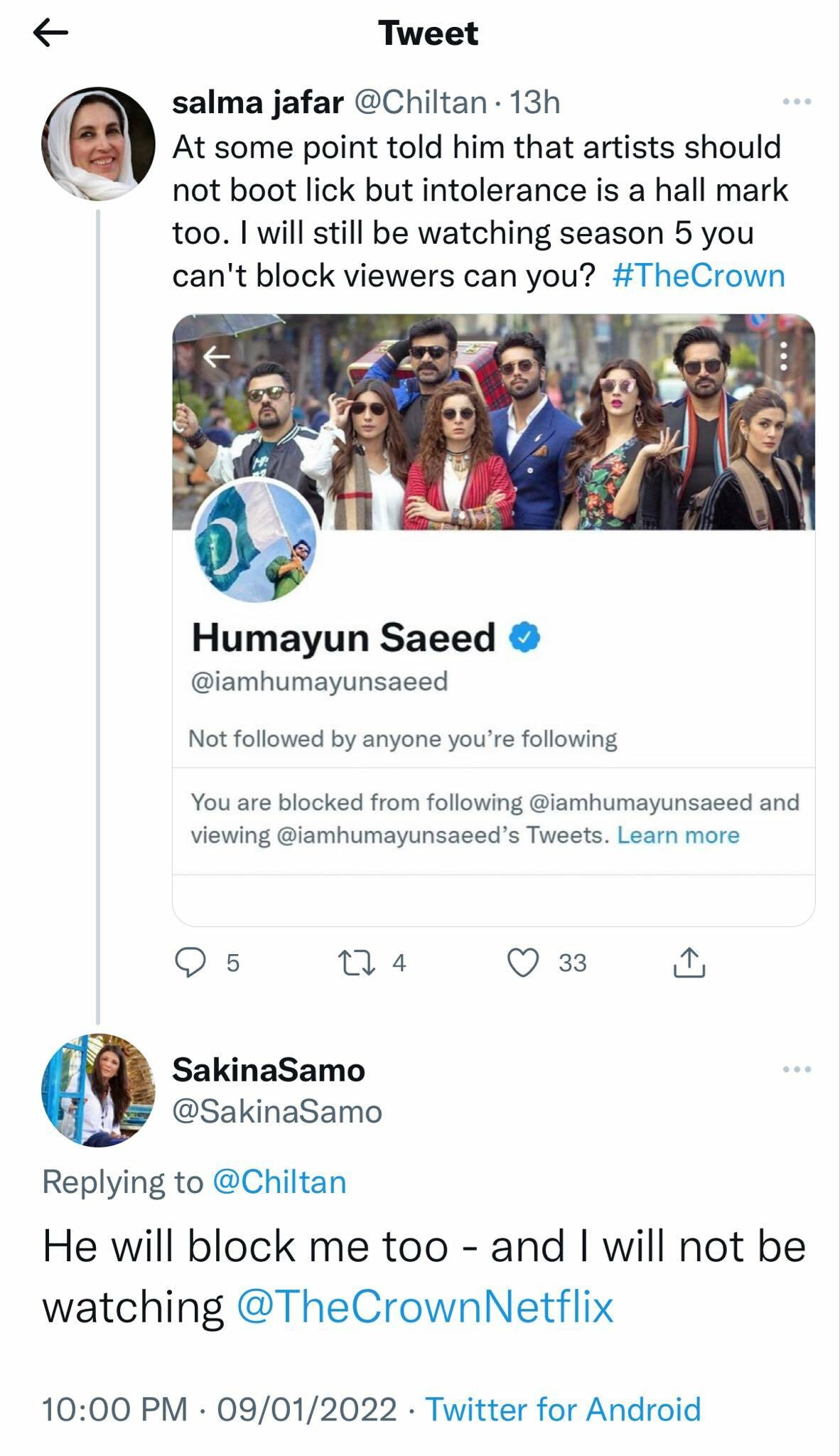 Senior actor and director Sakina Samo took to her twitter handle to condemn the choice of casting by the Netflix makers.