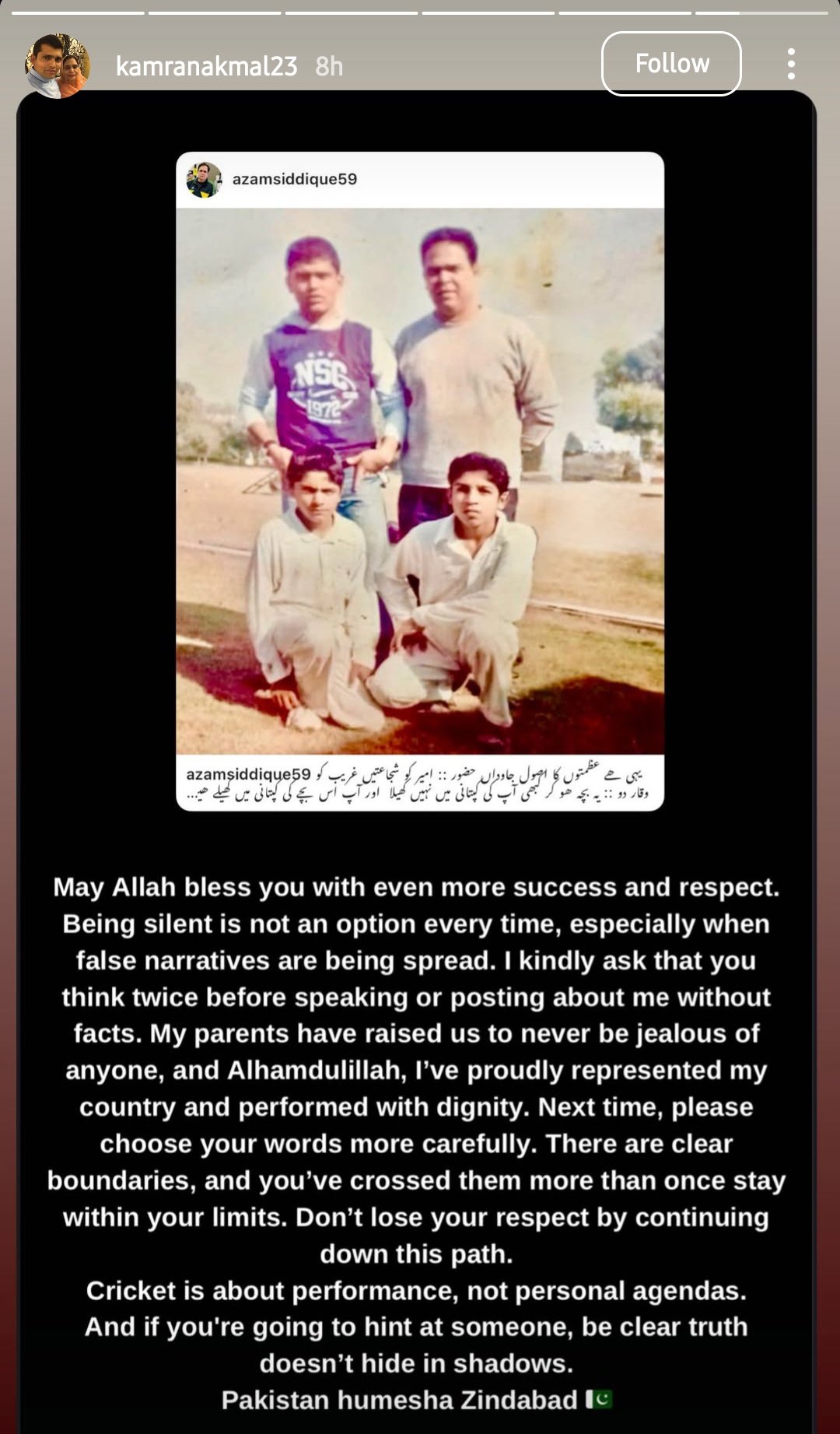 Now, Kamran Akmal has replied by posting the same photo on his Instagram story and writing down a stern warning.