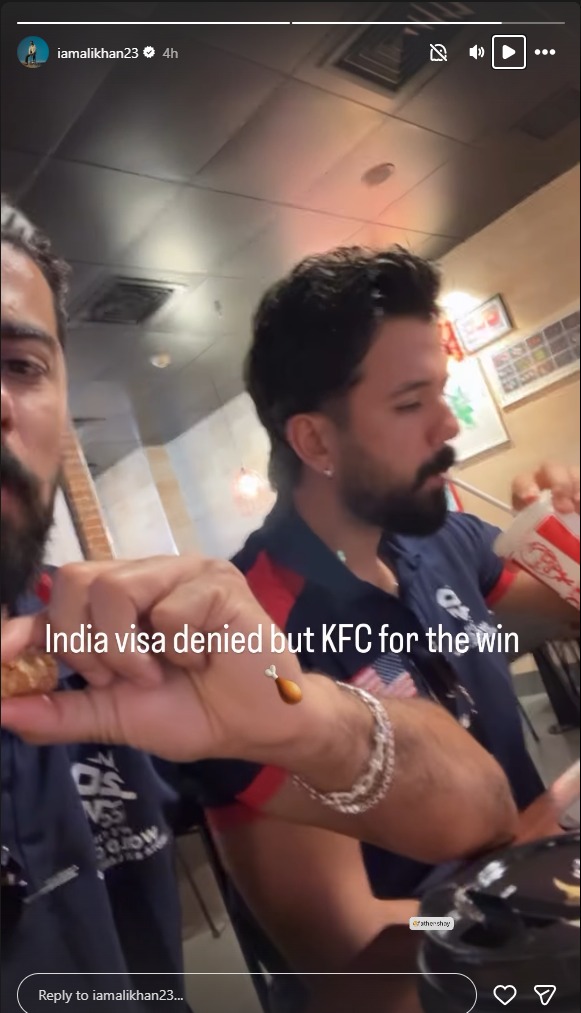Khan shared the update in an Instagram story that showed him having KFC alongside teammate Shayan Jahangir, who was also denied a visa.